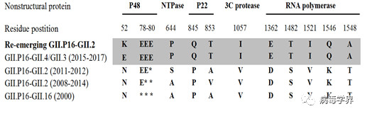 圖4. GII.P16-GII.2 諾如病毒非結(jié)構(gòu)蛋白突變序列分析