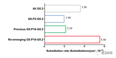 圖2. GII.2諾如病毒VP1基因序列進(jìn)化速率分析